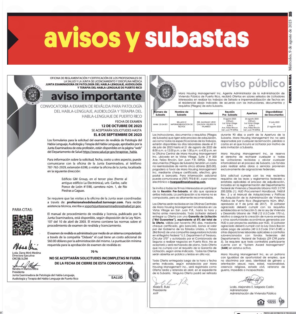 - Aviso Público: Convocatoria a Examen de Reválida para Patología del Habla-Lenguaje, Audiología y Terapia del Habla-Lenguaje (7 de julio de 2025, Primera Hora y El Nuevo Día)